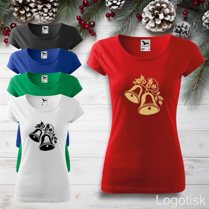 Zpestřete si vánoční atmosféru v tomto originálním tričku od nás. Dámské tričko s vánočním potiskem ZVONEČKY, motiv na přání doplníme o jméno, nebo text nad motiv. Více v popisu níže.