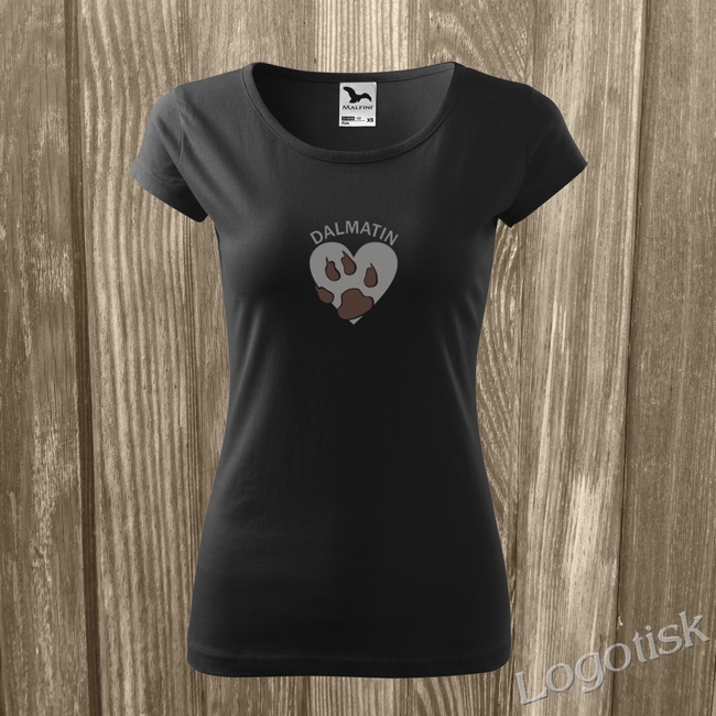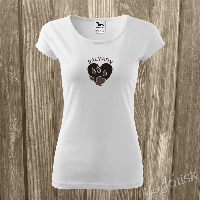 Dámské tričko - potisk pro pejskaře Dalmatin a tlapkou pejska v srdíčku