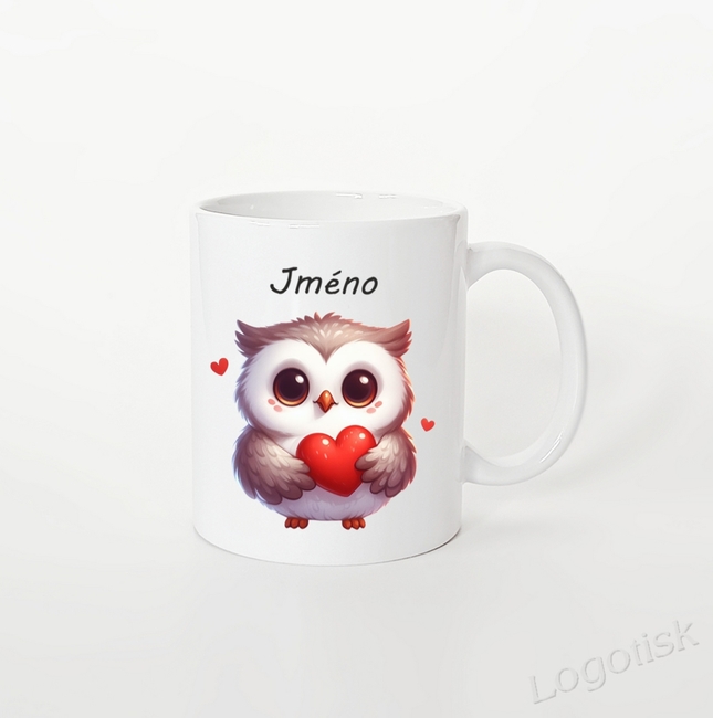 Hrníček nejen pro děti s roztomilou sovičkou se srdíčkem - nad motiv jméno na přání v ceně