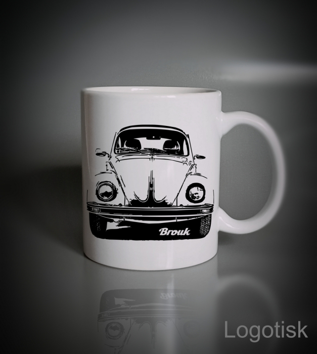 Originální hrníček auto BROUK v černé siluetě s doplněním druhé strany jménem, věnováním, vaší fotografí v ceně.