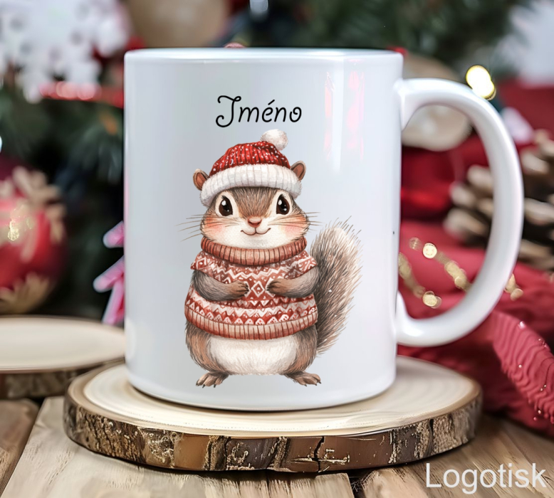 Vychutnejte si chvíle vánoční pohody se svým oblíbeným nápojem z tohoto hrnečku, nebo udělejte radost milým dárkem pro děti s touto roztomilou veverkou. Na přání rádi doplníme jméno nad motiv.