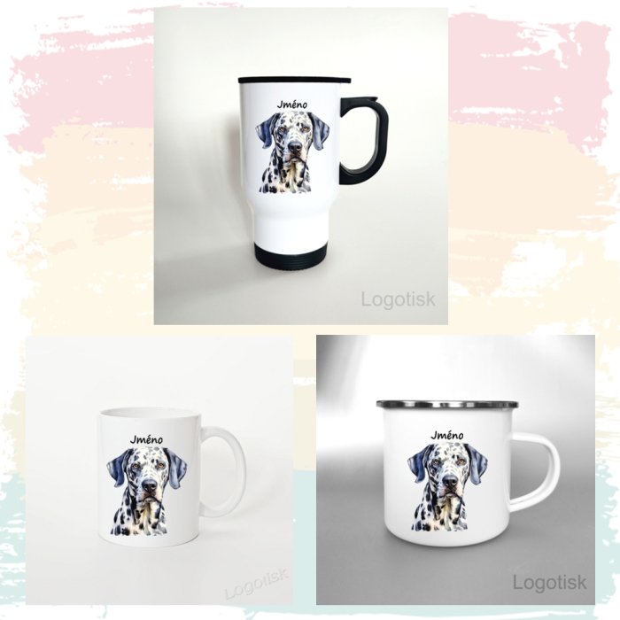 Pro milovníky psů. Udělejte radost sobě nebo svým blízkým. Vyberte si svůj oblíbený typ hrníčku a my ho potiskneme krásnou grafikou - pejsek DALMATIN.