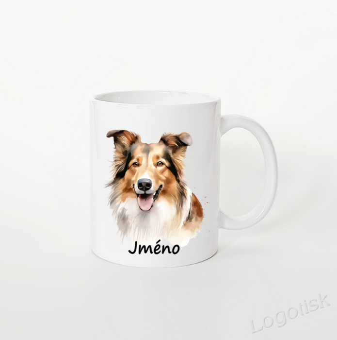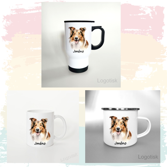 Pro milovníky psů. Udělejte radost sobě nebo svým blízkým. Vyberte si svůj oblíbený typ hrníčku a my ho potiskneme krásnou grafikou - pejsek KOLIE.
