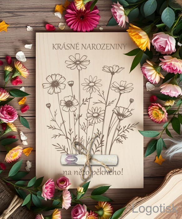 Jak udělat radost svým blízkým? Skvělou inspirací může být originální dřevěné přání s vypalovaným motivem květinek. Přání je navíc opatřeno šňůrkou, která umožňuje praktické připevnění bankovek. Pro ty, kdo chtějí darovat nejen radost, ale i něco více.