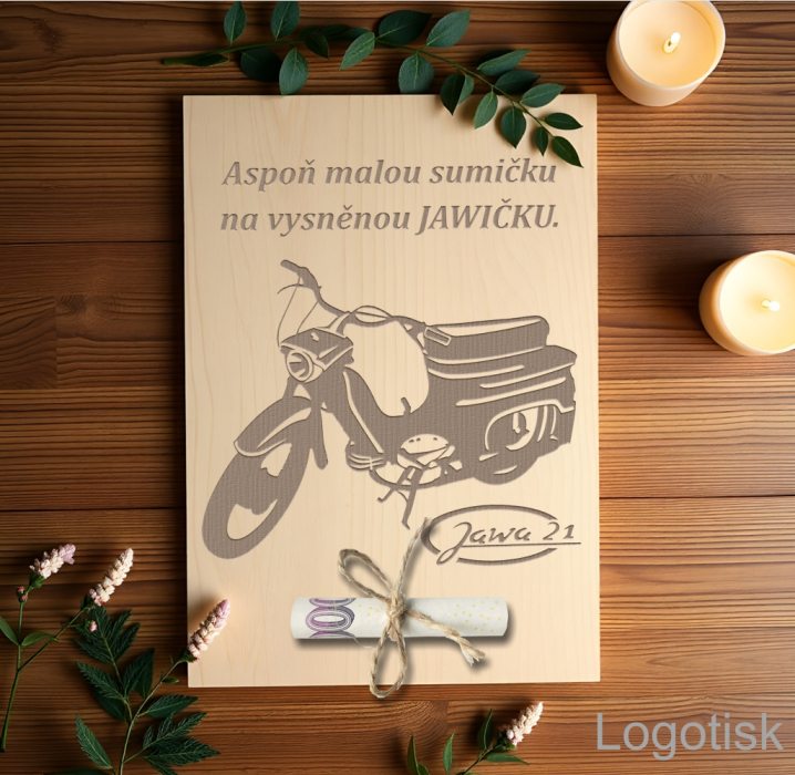 Jak udělat radost svým blízkým? Skvělou inspirací může být originální dřevěné přání s vypalovaným motivem veterána. Přání je navíc opatřeno šňůrkou, která umožňuje praktické připevnění bankovek. Pro ty, kdo chtějí darovat nejen radost, ale i něco více.