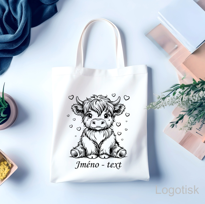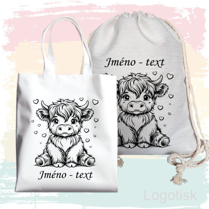 Nechte si vytvořit roztomilou bílou tašku nebo praktický lněný batůžek s obrázkem s kravičky! A co je nejlepší? Můžeme přidat i jméno podle vašeho přání, aby byl váš kousek ještě osobnější a jedinečný. Ideální na nákupy, do školy, na výlety... prostě kamkoliv!